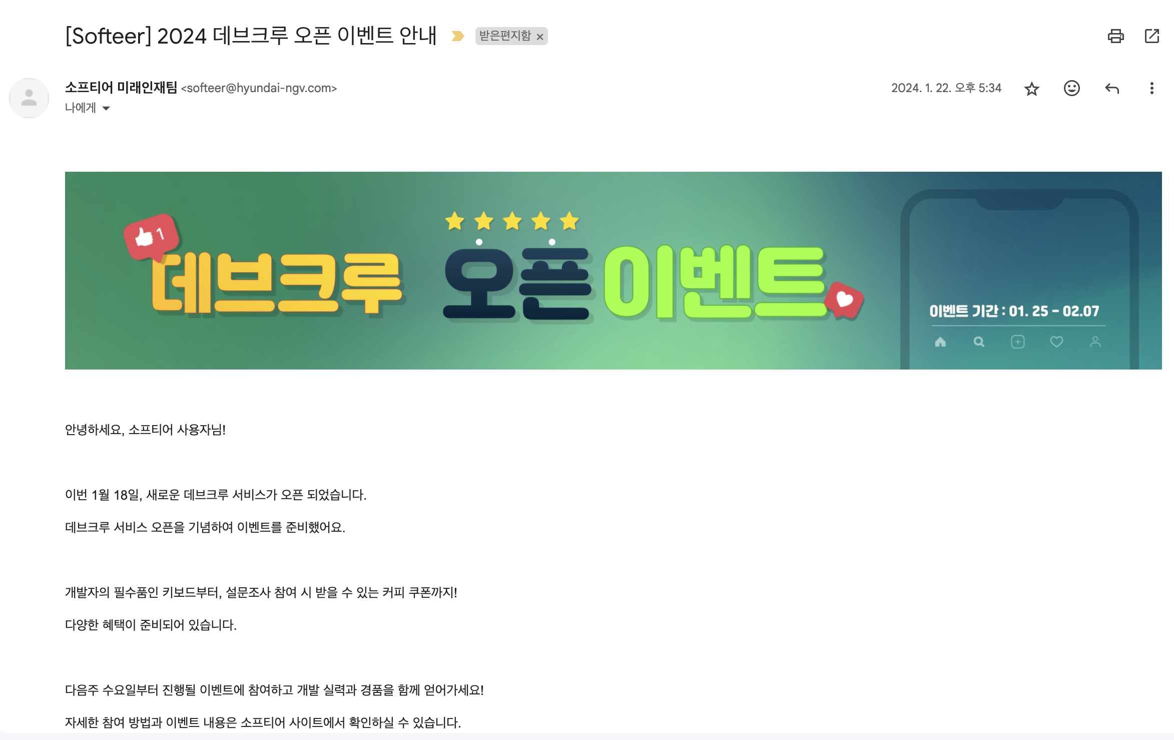 평소 소프티어에서 이메일을 받아 보고 있는데 이런 메일이 왔다