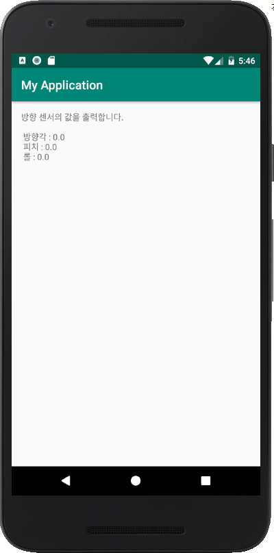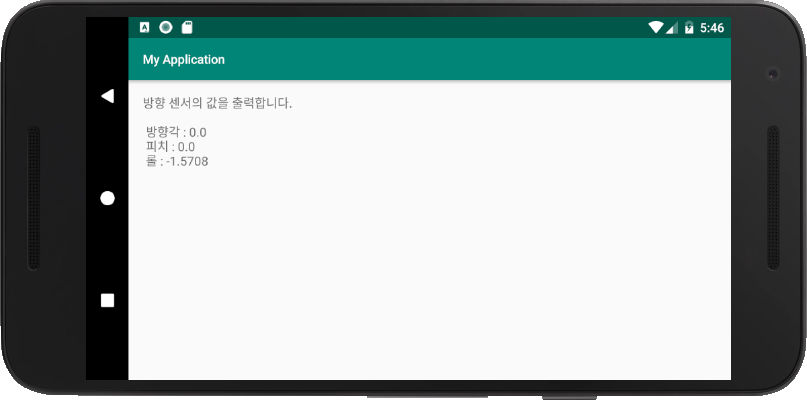 mytext.setText("방향 센서의 값을 출력합니다. \n" + "\n 방향각 : " + sensorEvent.values[0] +